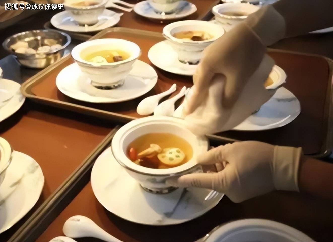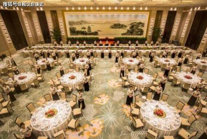 国宴的菜品也很有讲究,最早是由周总理在开国大典那天晚上定下的“四菜一汤”标准。你可能想不到,上世纪80年代,国宴标准是每位宾客50-80元,重要的外宾也不超过80元。08年的时候,调整到了每人不超过200元。