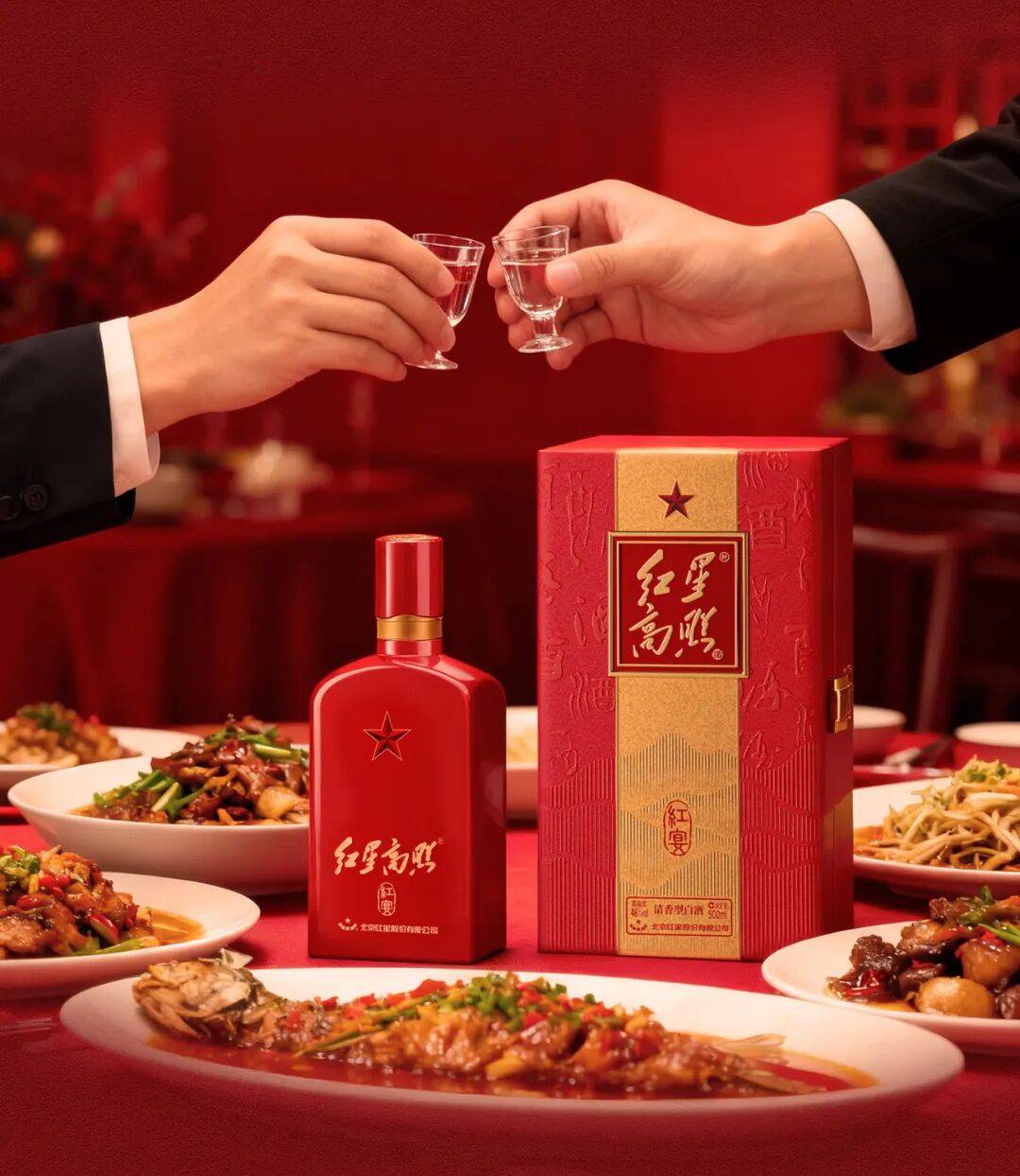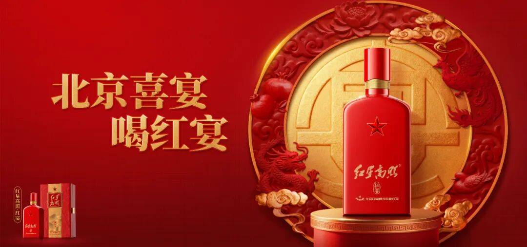 红宴更是北京精神的宴席化身,是看得见、品得到的城市符号。在视觉上,它是一件强烈的文化表达:纯正热烈的中国红瓷瓶,配上遒劲的毛体书法“红星高照”,形成鲜明的视觉标识;红金交织的配色,精准契合了北京喜宴对“喜庆”与“尊贵”的双重追求,上桌即成焦点,自带仪式感。在味觉上,它则是北京人性格的物化:其醇厚丰满的酒体风格,被塑造为“局气厚道”的味觉记忆,它不是在安静中独酌的复杂风味,而是在热闹宴席中传递豪爽与真诚的社交语言,成为联结情感最地道的方式。
