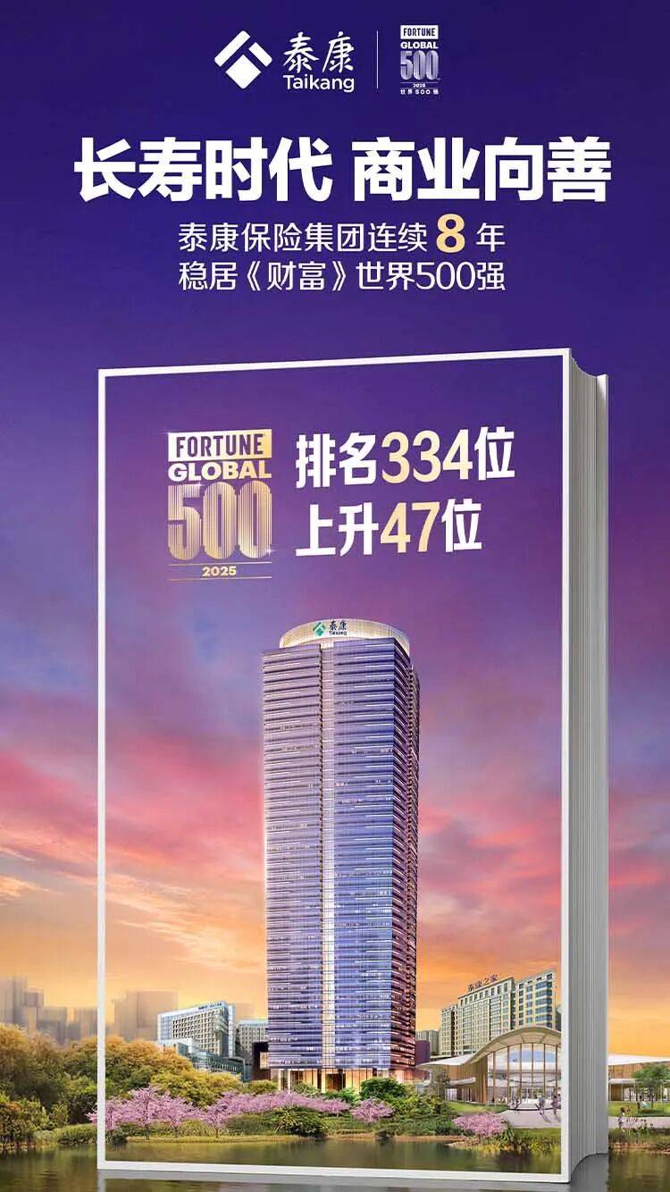 在2025年《财富》世界500强排行榜中,泰康保险集团以454.56亿美元的营业收入,位列榜单第334位,较2024年上升47位。在《财富》发布的“2025年最受赞赏的中国公司榜单”中,泰康保险集团连续八年上榜,成为全明星榜中唯一一家保险公司。2025年《财富》中国500强排行榜发布,泰康保险集团位列第83位。