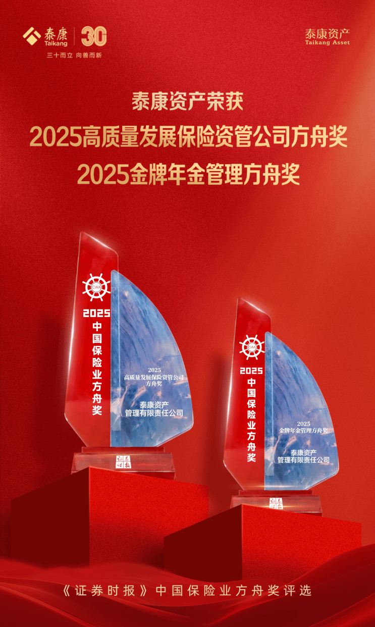 在《证券时报》主办的“中国保险业方舟奖”评选中,泰康资产荣获“2025高质量发展保险资管公司方舟奖”“2025金牌年金管理方舟奖”两座大奖。