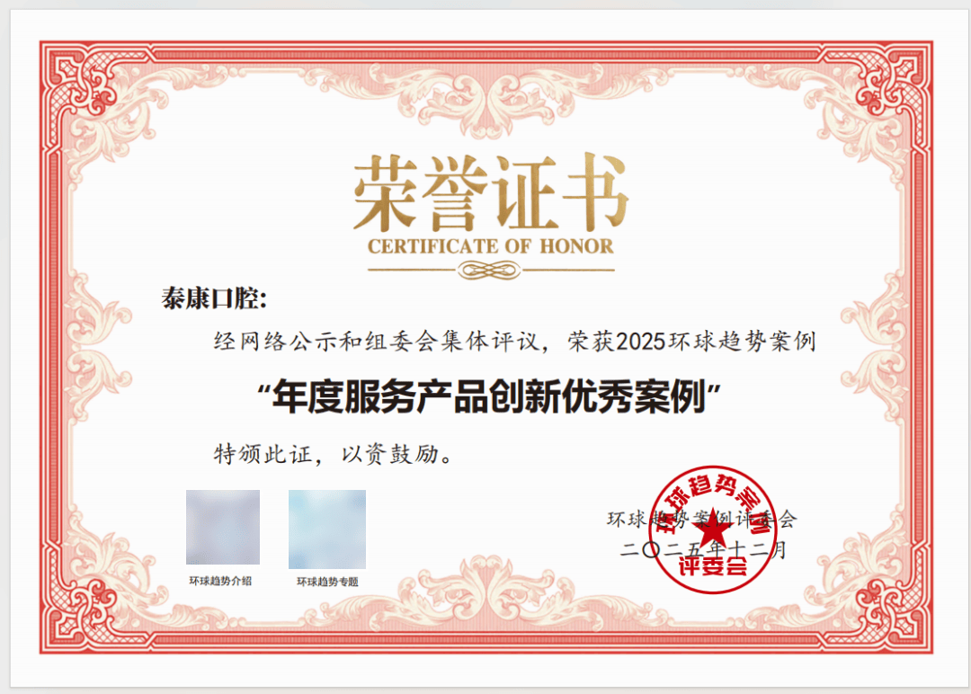 2025年《长寿时代安心种牙白皮书》发布,泰康“种牙无忧保”升级至2.0版本。该案例凭借“种-保-养”一体化创新服务模式,成功荣获2025环球趋势案例“年度服务产品创新优秀案例”。