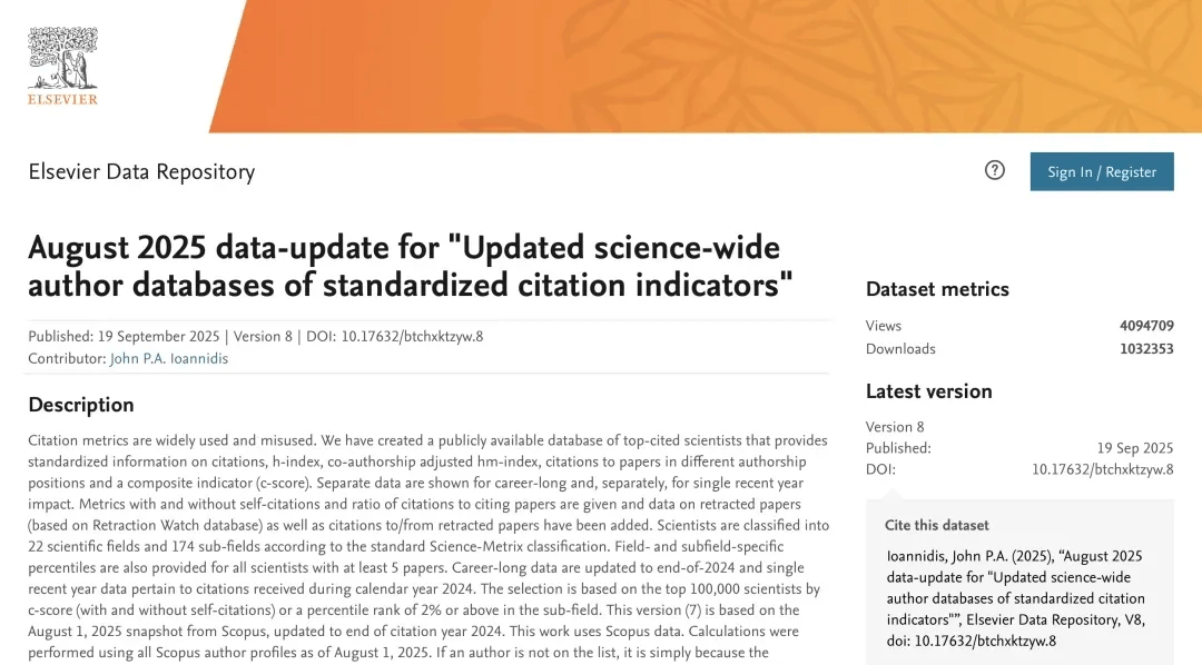 在斯坦福大学与国际权威学术出版社爱思唯尔Elsevier共同发布的2025年全球前2%顶尖科学家榜单中,泰康口腔集团级首席专家沈刚教授荣登本年度“全球前2%顶尖科学家”榜单。