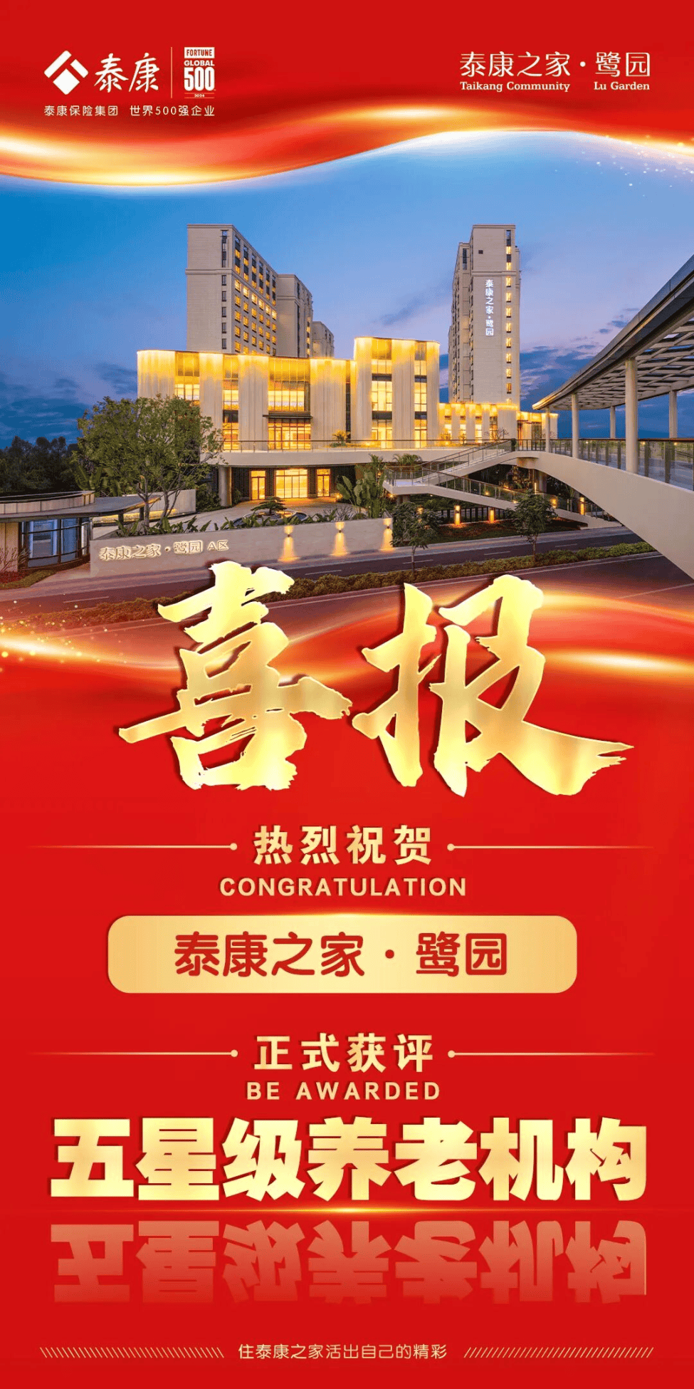 2025年1月,福建省民政厅公布《福建省民政厅关于福建省2023年度五星级养老服务设施名单的公告》,泰康之家·鹭园被评定为最高级别的“五星级养老机构”。至此,泰康之家共有燕园、粤园、蜀园、楚园、沈园、桂园、鹭园7家社区被评为“五星级”养老机构。