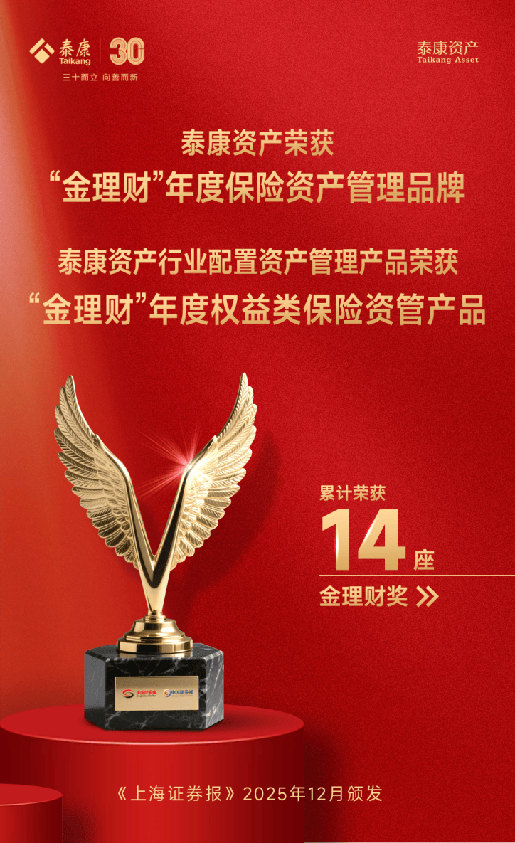 在《上海证券报》主办的“2025上证鹰·金理财”评选中,泰康资产再次荣获“金理财”年度保险资产管理品牌奖,泰康资产行业配置资产管理产品荣获“金理财”年度权益类保险资管产品奖。