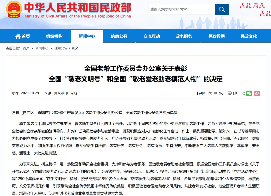 全国老龄工作委员会办公室发布《关于表彰全国“敬老文明号”和全国“敬老爱老助老模范人物”的决定》,泰康之家3名个人荣获全国“敬老爱老助老模范人物”称号。
