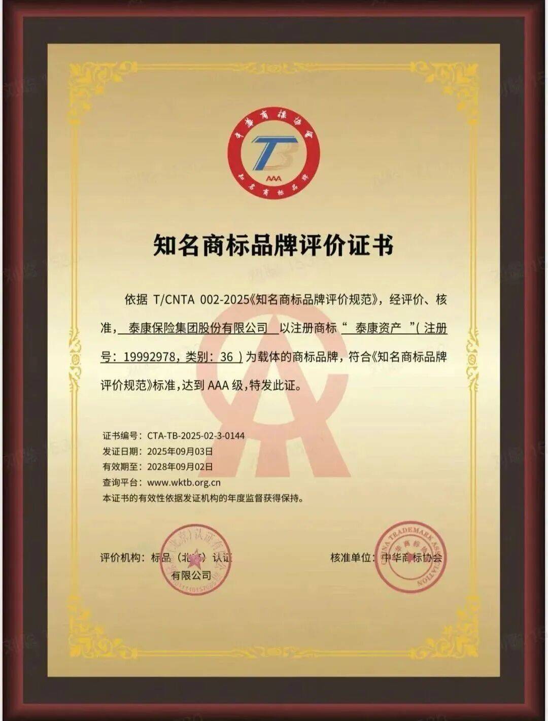在第十五届中国国际商标品牌节上,“泰康资产”获评“AAA知名商标品牌”。