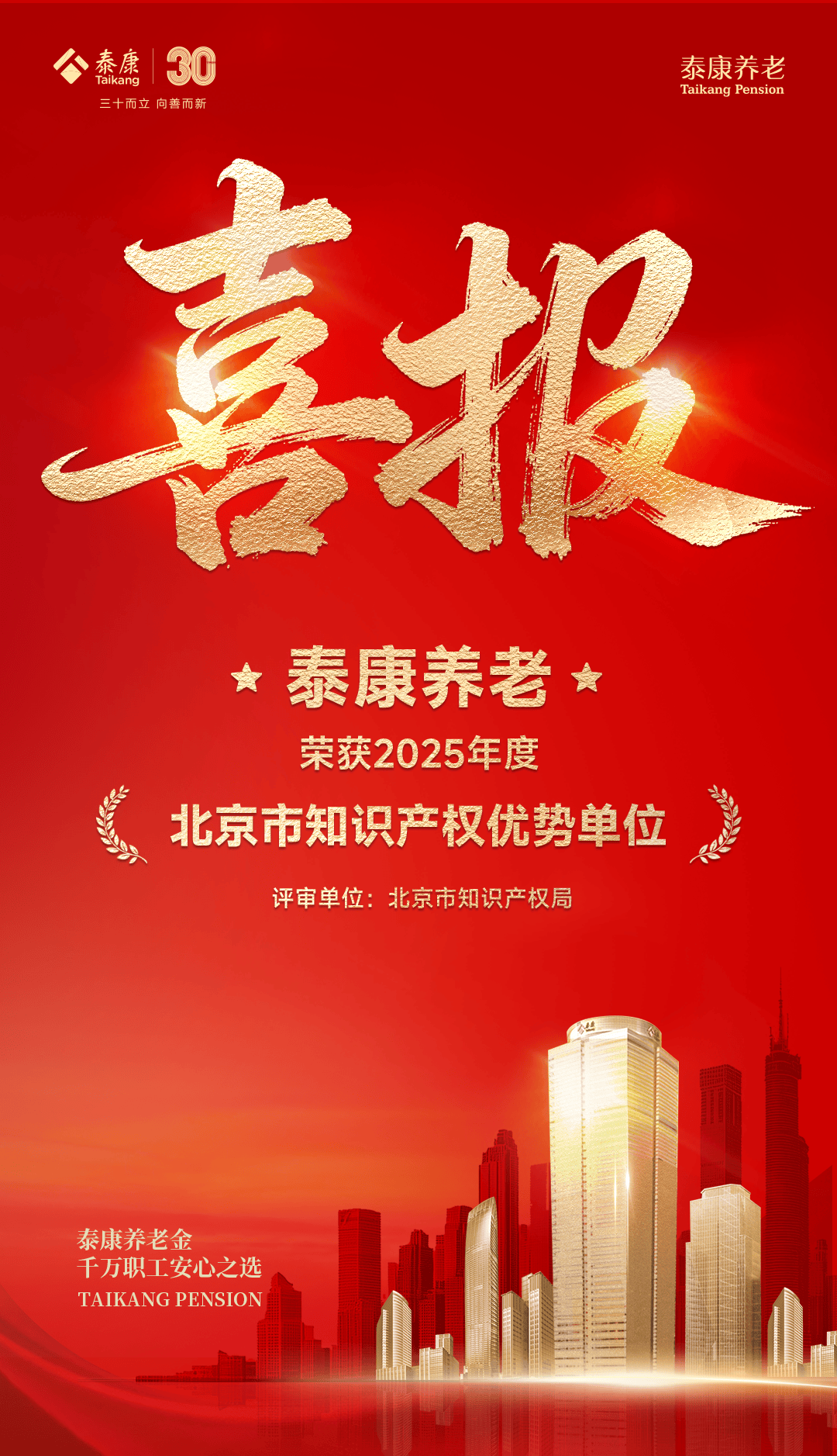 11月19日,泰康养老获评北京市知识产权局“2025年度北京市知识产权优势单位”。作为此次入选名单中唯一的专业养老保险公司,该荣誉充分体现了泰康养老在知识产权领域持续投入与深度布局的成果。