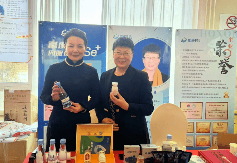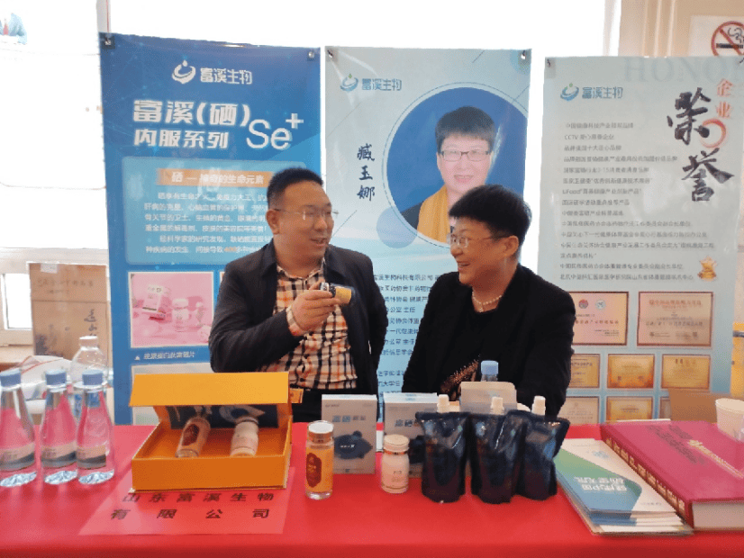 演讲中,臧玉娜董事长分享了富溪生物在富硒产业的创新实践与成果。作为国家富硒行业3·15消费者满意品牌,公司秉承“科学补硒、助力健康中国”的理念,依托自主创新与产学研合作,构建了“硒+”健康体系。除向大家介绍了公司希儿睿品牌的《富硒明目贴》、《富硒多肽片、胶原蛋白富硒片》等研发成果外,还特别分享了与墨玉琼浆公司合作创新研发的正六价天然无毒矿质硒液及以此为硒源生产的《富硒水》、《含锌硒丹液》等的作用。