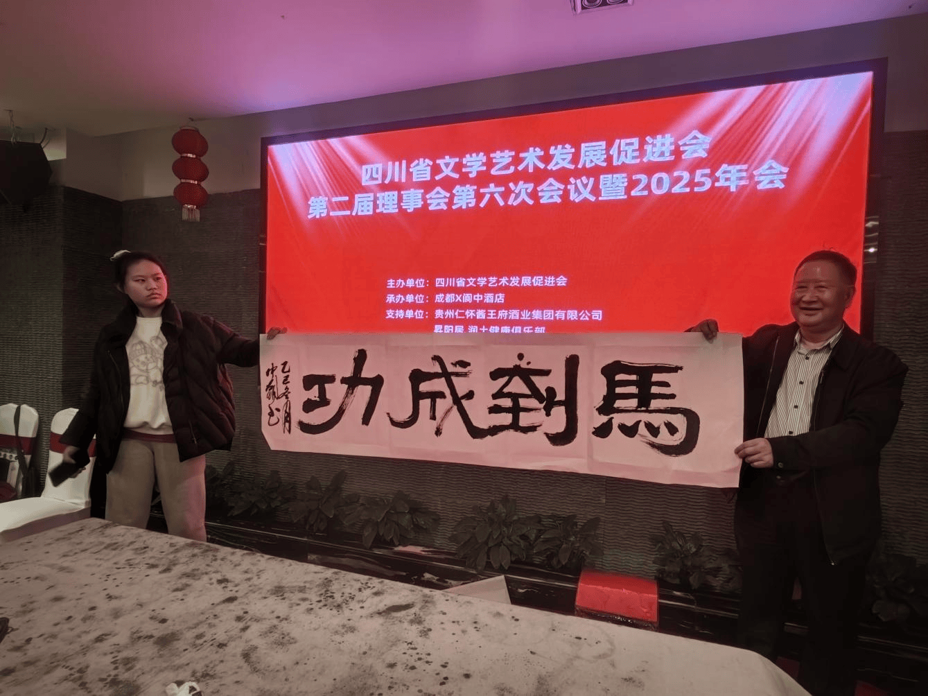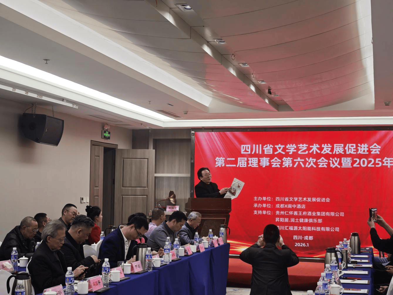 本次年会由四川省文学艺术发展促进会主办,四川成都X阆中酒店承办,得到了贵州仁怀酱王府酒业集团有限公司、昇阳居·润土健康俱乐部和四川汇福源太阳能科技有限公司的大力支持。
